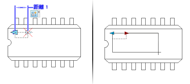 套用至線性參數的比例動作可向參數的方向調整所選物件的比例。