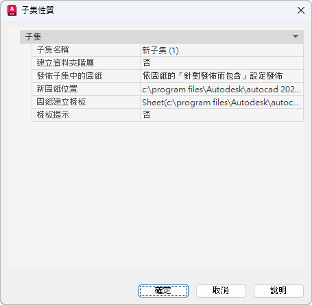 為包含此子集相關圖紙的所有新圖檔 (DWG) 指定資料夾位置。
