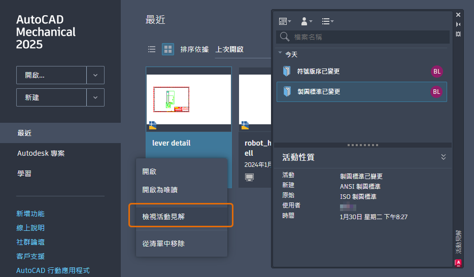 瞭解此版 AutoCAD Mechanical 2025 工具集的新功能。如需技術詳細資料,請參閱發行說明。