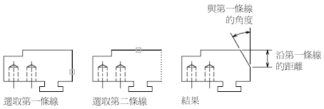 您可以指定倒角一側的距離和倒角角度,以倒角轉角。