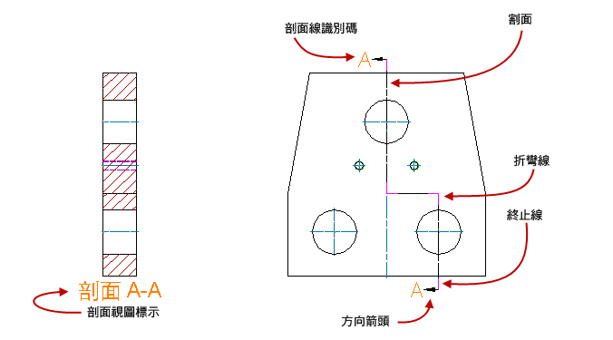 圖示表示。AutoCAD Mechanical 工具集剖面視圖型式由
