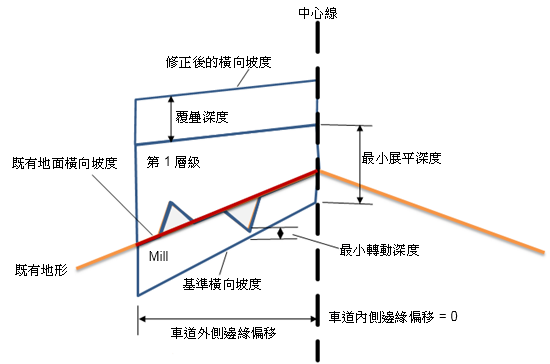 | 既有車道外側邊緣 | 這是計算既有地面坡度的起點。 | 數字 | 0.000m |