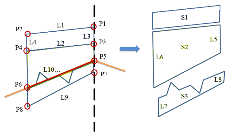 | P1、P2 | EOV | 完工整地地形上的覆疊邊緣 (覆疊頂部邊緣) |