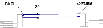 將中央連接的頂部插入貼附點與標記點之間。如果指定非零的「深度」,則會將中央連接的底部與頂部平行地插入,並加入垂直連接使造型封閉。