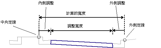 無中央時的車道寬度,即從貼附點到外側車道邊緣的寬度。 |
