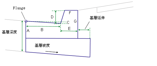 凸緣點處的基層深度。如果無基層,則使用零。 |
