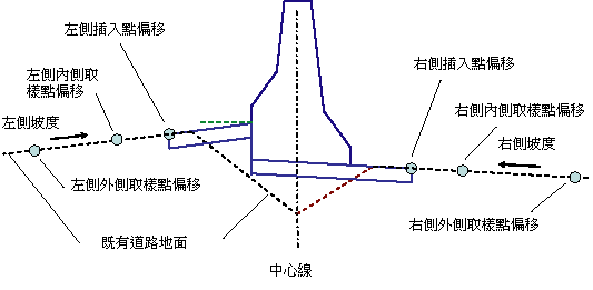 左側外側取樣點偏移。左側坡度將根據取樣點之間的既有地形來計算。 |