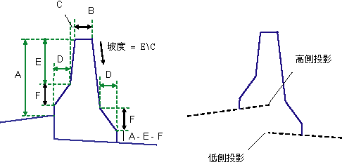 高側上的擋牆底部偏移是透過指定的標註來計算的。高側上的覆疊圖層將從剪切點延伸到此偏移。