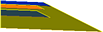 路肩多圖層:類似於帶有延伸基層的路肩 (具有其他基準路線和基層路線)。頂部兩條鋪面路線具有至邊坡坡度的可變延伸。 預設工具選項板:路肩次組合 |