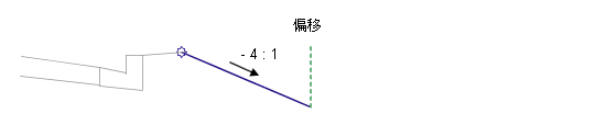 在配置模式中,此次組合顯示以 -4 : 1 的坡度繪製到指定偏移的連接。連接以指向外側的箭頭終止。