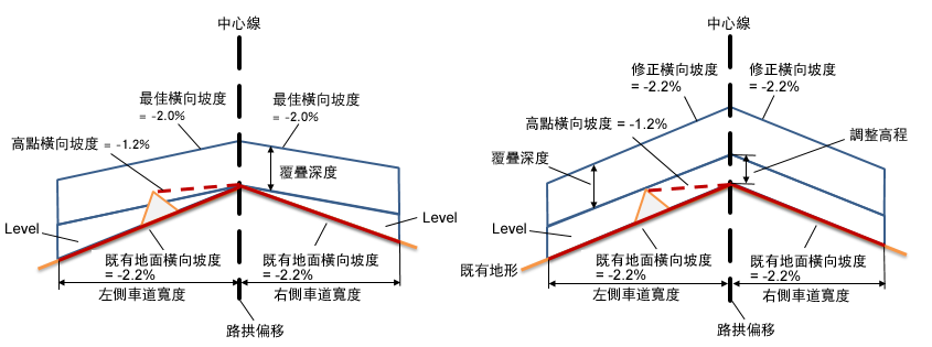 修正橫向坡度將會是理想橫向坡度加上或減去坡度公差值。