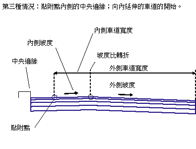 無中央時的內側車道寬度,即從貼附點到坡度比轉折點之間的寬度。 |