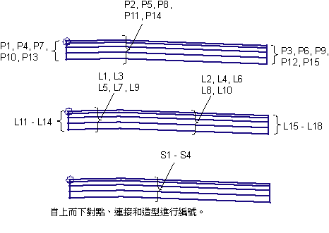 下表列示了此次組合中已為其指定代碼的點代碼、連接代碼和造型代碼。此次組合中未為其指定代碼的點代碼、連接代碼和造型代碼,不包括在此表中。