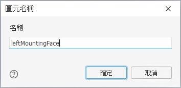 - 在零件檔中,於已經或將要約束至另一個零件的幾何圖形上按一下右鍵,然後選取「指定名稱」。