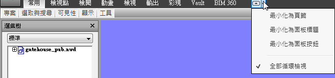 - 最小化為面板標題:最小化功能區以便僅顯示頁籤和面板標題。