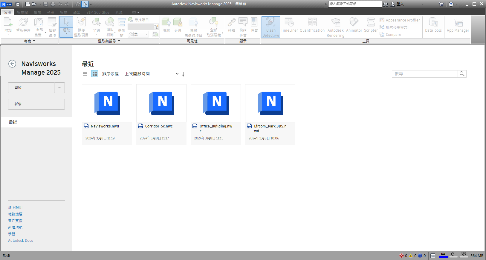 Navisworks 首頁致力於為產品的使用者提供一致且友好的體驗。如果一開啟應用程式就直接進入工作區,可能會讓人感到不適應、難以接受。通常情況下,直接進入的工作區與您想要完成的工作並不相符,並且它假定您對產品的瞭解程度相對較高。Navisworks 首頁重點包括您最常見的需求,並且可讓您輕鬆存取所需資源。