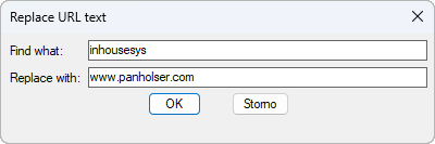 Vyhledá a nahradí zadaný textový řetězec v adrese URL používané v hypertextových odkazech, které jsou připojené ke všem vybraným objektům.