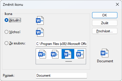 Zobrazí dialog Procházet (standardní dialog pro výběr souboru), ve kterém můžete vybrat ikonu ze souboru.