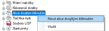 Poznámka: K akci dvojitého kliknutí lze přiřadit vždy jen jeden příkaz.