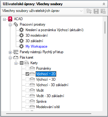 Nastavení aktuálního pracovního prostoru v editoru Upravit uživatelské rozhraní (CUI):