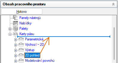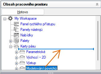 - V podokně Obsah pracovního prostoru klikněte na znaménko plus (+) vedle uzlu Panely nástrojů. Tento uzel se rozbalí.