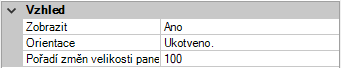 - V poli Pořadí změn velikosti panelů zadejte hodnotu k určení pořadí změny velikosti panelu pásu karet mezi jeho sousedy při změně velikosti celého pásu karet.