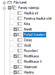 - Klikněte na zaškrtávací políčka vedle jednotlivých panelů nástrojů, které chcete přidat do pracovního prostoru.