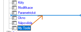- V podokně Uživatelské úpravy: <název souboru> klikněte na znaménko plus (+) vedle uzlu Panely nástrojů. Tím se tento uzel rozbalí.