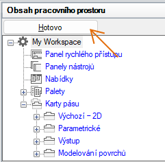 - V podokně Obsah pracovního prostoru klikněte na tlačítko Hotovo.