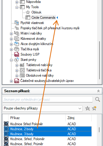 Přetáhněte příkaz, který chcete přidat do podnabídky, z podokna Seznam příkazů do podokna Uživatelské úpravy: