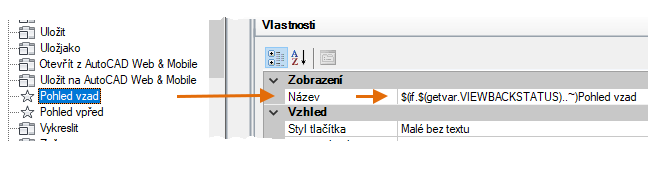 Zde například je zobrazeno, jak by měly vypadat vlastnosti příkazu Pohled vzad: