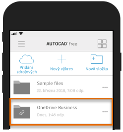 Poznámka: Výkresy vytvořené v mobilní aplikaci a uložené u zprostředkovatele cloudového úložiště třetí strany je možné načíst i z verze aplikace AutoCAD pro stolní počítače. K získání přístupu k souborům v cloudu bude možná nutné nainstalovat další aplikaci, například aplikace pro stolní počítače služby Dropbox nebo OneDrive. Po instalaci těchto aplikací budete mít přístup k těmto souborům v cloudovém úložišti, jako kdyby se nacházely přímo na vašem místním nebo síťovém disku. Pokud máte produkt založený na aplikaci AutoCAD 2020 pro stolní počítače, můžete využít nových integrovaných nástrojů pro cloudová úložiště třetích stran.