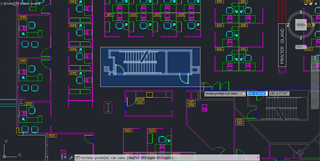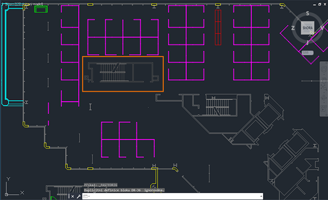 Schodiště se do výkresu vloží pomocí původních souřadnic z předchozího výkresu. Je to skvělý způsob, jak při kopírování objektů z výkresu do výkresu zachovat geometrii zarovnanou.