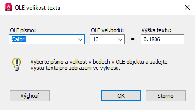 Tato tabulka je vložena do výkresu aplikace AutoCAD a není propojena s původní tabulkou. Změny provedené v tabulce se v objektu vloženém aplikace AutoCAD neprojeví. Další informace o propojení dat tabulky v aplikaci AutoCAD naleznete v části Správce datových propojení.