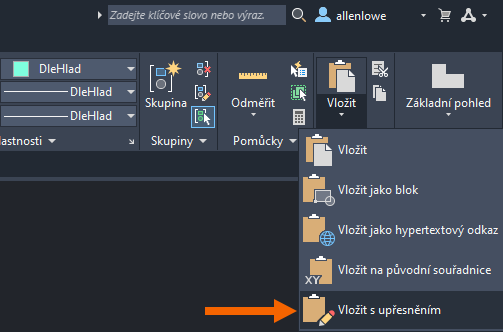 Můžete také zadat příkaz SVLOŽBLOK na příkazovém řádku nebo stisknout kombinaci kláves Shift+Ctrl+V.