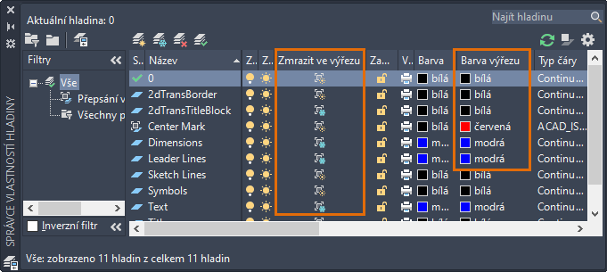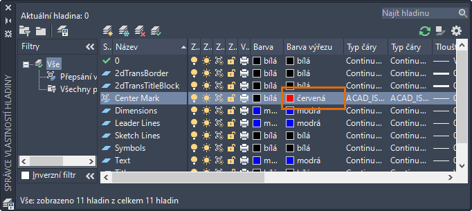 Pomocí příkazu HLADINA otevřete Správce vlastností hladiny. Hledat