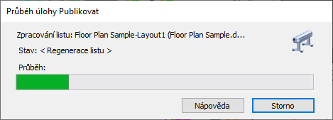 Krátce se zobrazí dialog Průběh úlohy publikování.