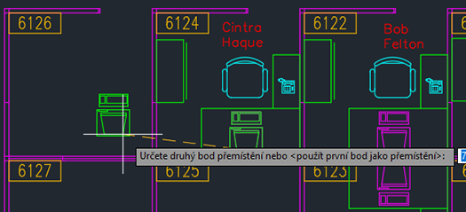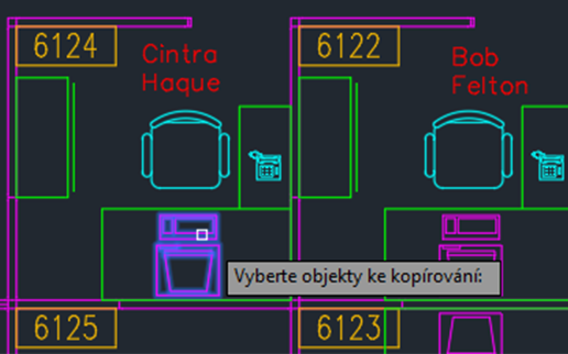 Zkusme jednoduchý příklad. Předpokládejme, že chcete vymazat objekty, které nejsou nábytkem, uvnitř kóje 6124.