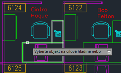 Stejně jako název značí, příkaz Změnit na aktuální hladinu (příkaz AKTHLAD) změní (přesune) objekt z jedné hladiny na jinou.