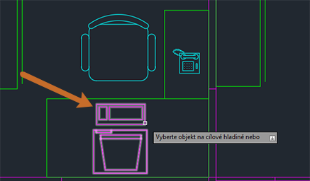 Pomocí předchozích dvou příkazů jsme změnili vlastnosti objektů, které jsou již ve výkresu. Předpokládejme však, že chcete kopírovat objekty a umístit je do jiné hladiny. To lze provést pomocí příkazu Kopírovat objekty do nové hladiny (příkaz KOPIEDOHLAD).