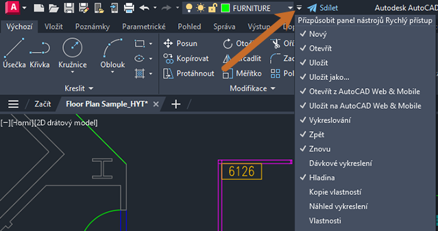 Hladina FURNITURE je nyní aktuální hladinou.