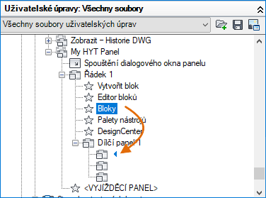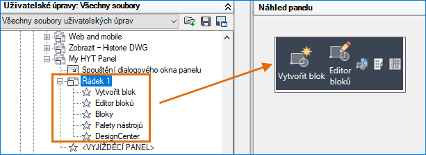 V tomto cvičení přidáte na panel pásu karet My HYT Panel, který jste právě přidali, pět příkazů souvisejících s bloky.