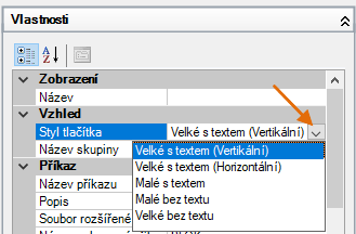 V podokně Vlastnosti v pravé části klikněte v části Vzhled na rozevírací seznam Styl tlačítka a vyberte možnost Velké s textem (vertikální).