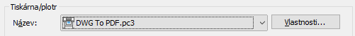 V dialogu Vykreslení vyberte nastavení, která chcete uložit. Například název tiskárny nebo plotru najdete tak, že projdete rozevírací seznam a kliknete na možnost DWG na PDF.pc3.