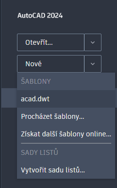 Šablony nainstalované s aplikací AutoCAD byste měli vidět.