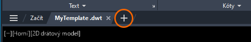 Snadný způsob, jak testovat změny šablony je nejdříve ji uložit a poté kliknout na znaménko + na záložkách výkresů k vytvoření nového výkresu. Nechat šablonu otevřenou pro testování, zapříčiní, že se změny šablony provedou velmi rychle.
