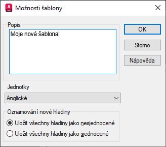 Zde je několik nastavení výkresu, která nelze uložit do šablony výkresu: