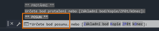 Příkazový řádek označuje aktuální režim. Přesunutím kurzoru se můžete ujistit, jaký režim je aktivní. Nakonec se vrátíte zpět do režimu protažení.