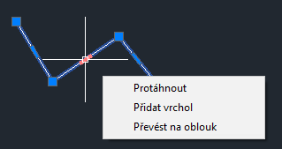 Přesunutím kurzoru nad jeden z uzlů bodu poloviny segmentu zobrazíte jeho nabídku uzlu.