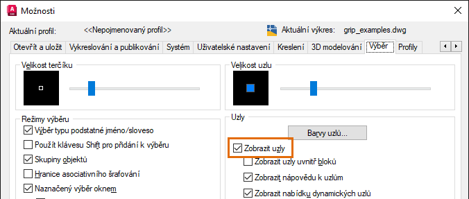 V dialogu Možnosti na kartě Výběr zkontrolujte, zda je zapnuta možnost Zobrazit uzly.